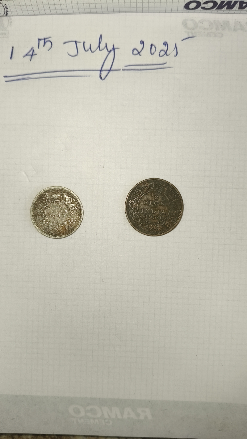 1/2 paisa 1/4paisa 1,2,3,5,10,20 paisa coins