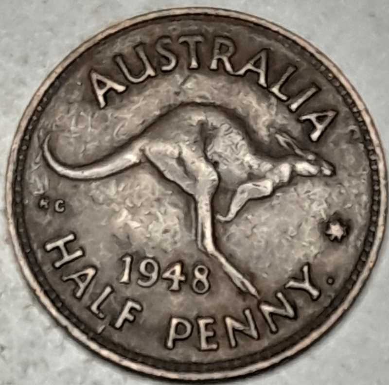 1948-Y . Australian1/2 penny, VF-30(very fine)