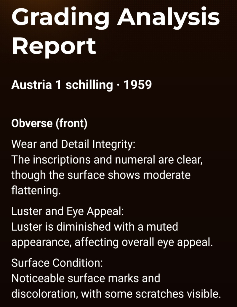 1959 Austrian 1 schilling, VF-30(VERY FINE)