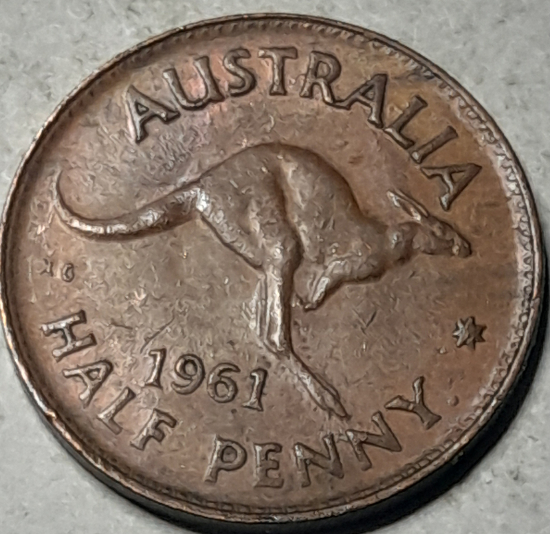 1961-Y . Australian 1/2 penny, VF-30(very fine)