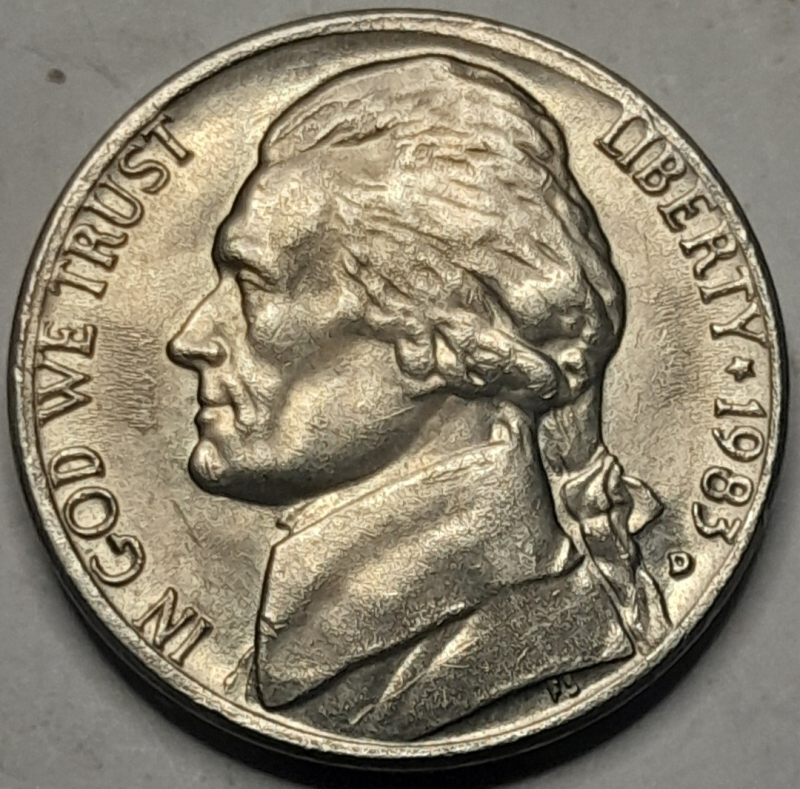 1983-D American Jefferson nickle, MS63(mint state)