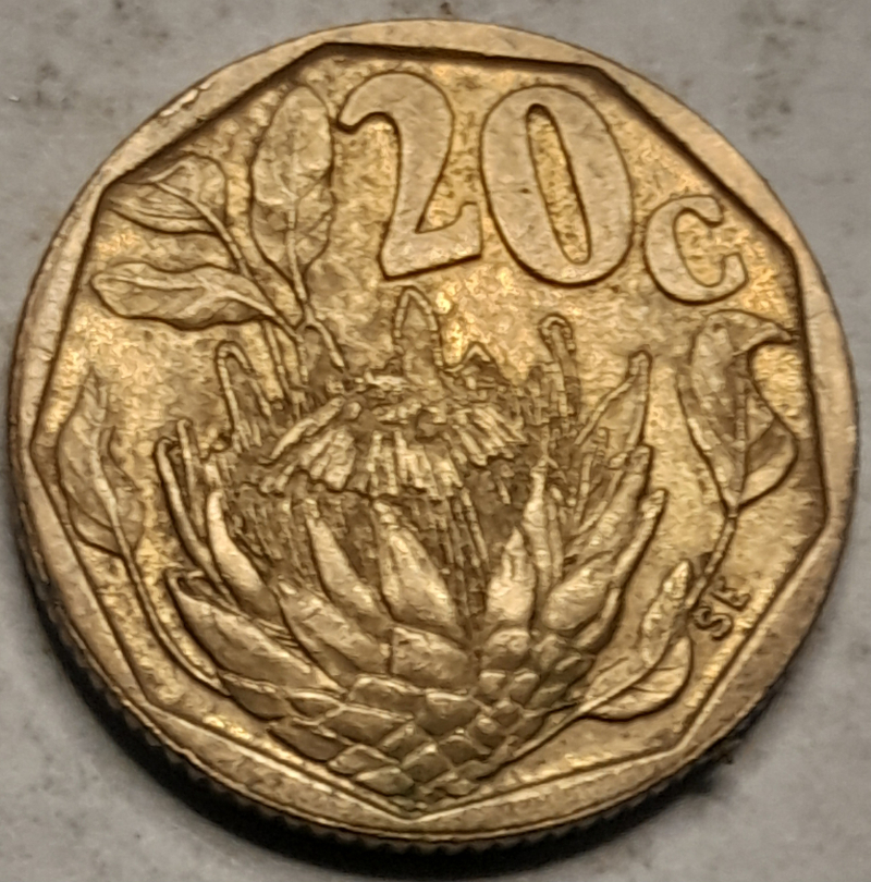 1993 South African 20 cents, Vf-35(very fine)