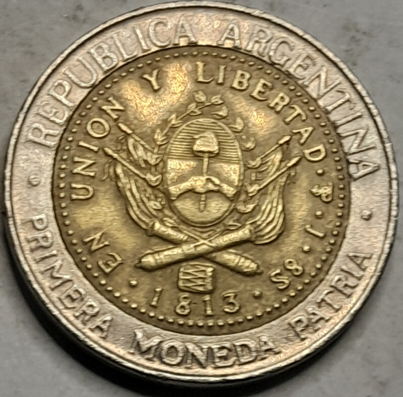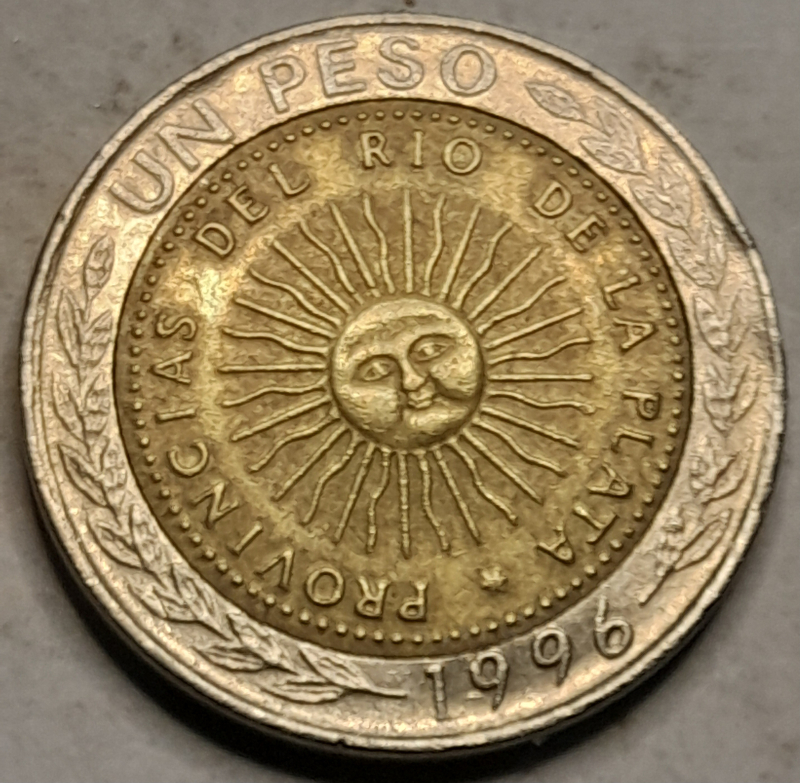 1996-A. Argentina 1 peso, Xf-45(Extremely fine)$1