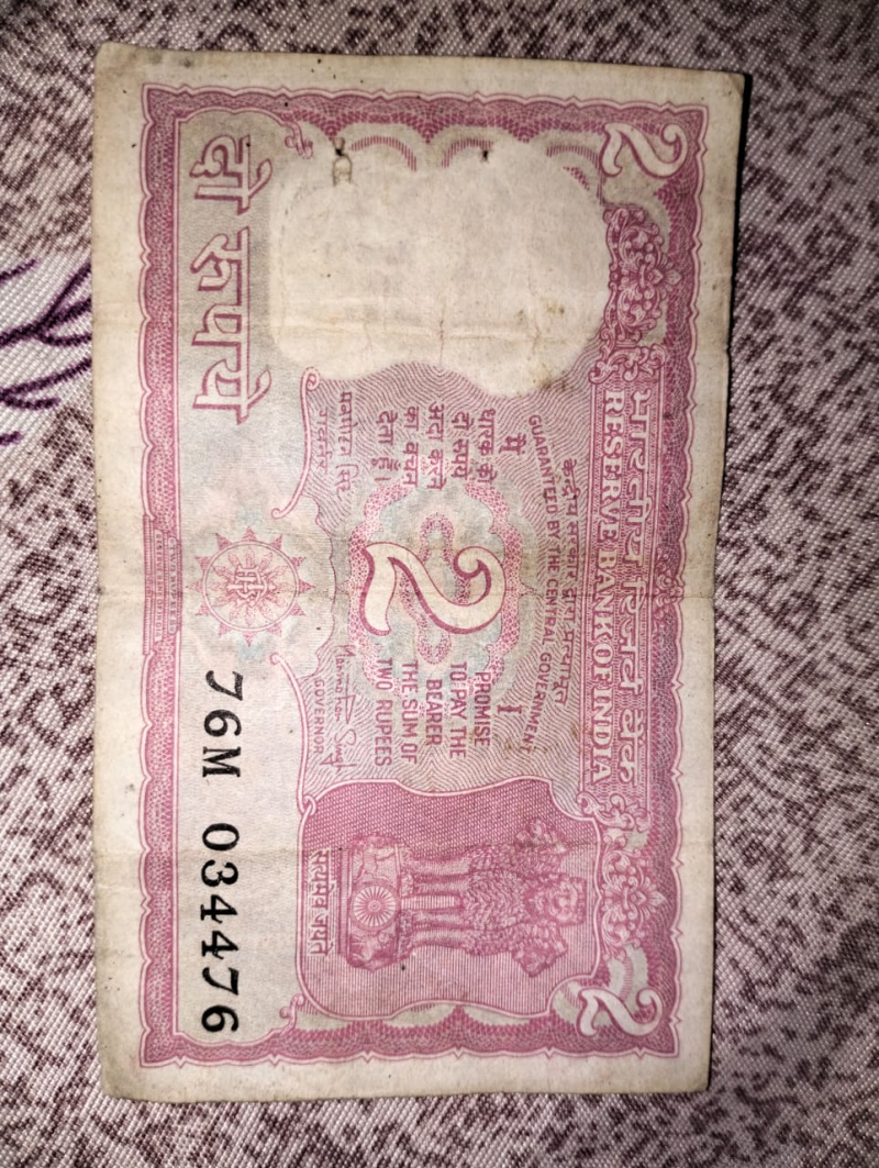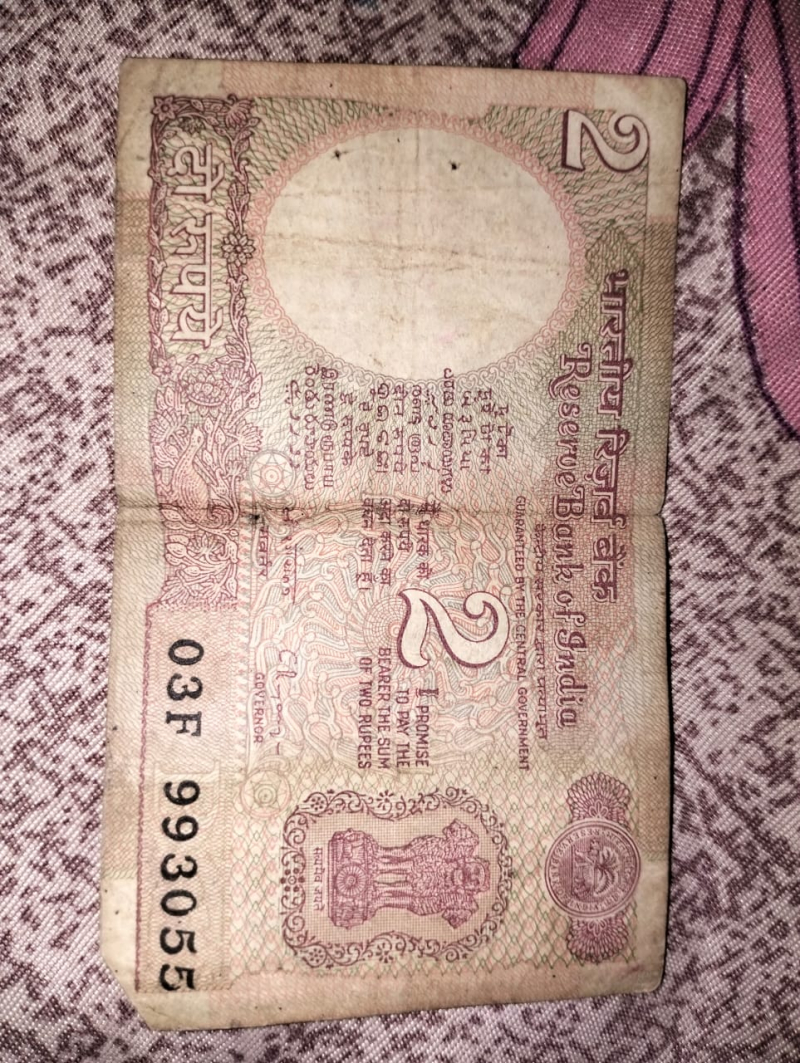 2 Rupees Indian note very old