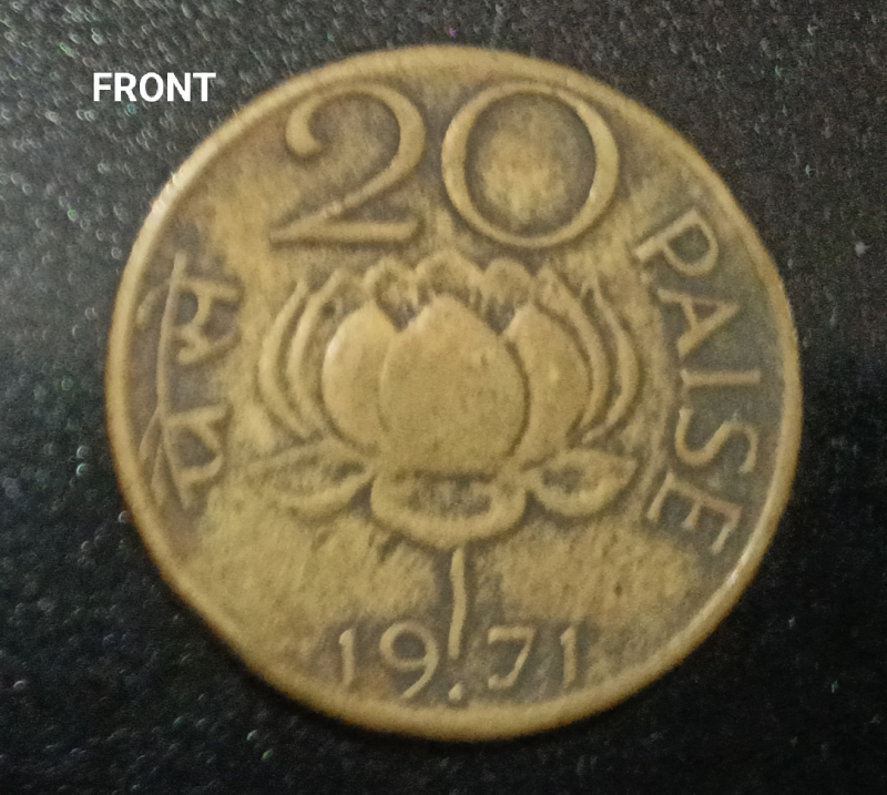 An Indian rare 20 paisa coin of year 1971 with lotus symbol