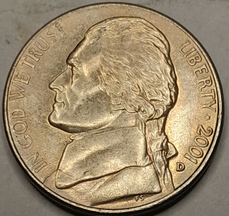2001-D American Jefferson nickle, MS-64(mint state)