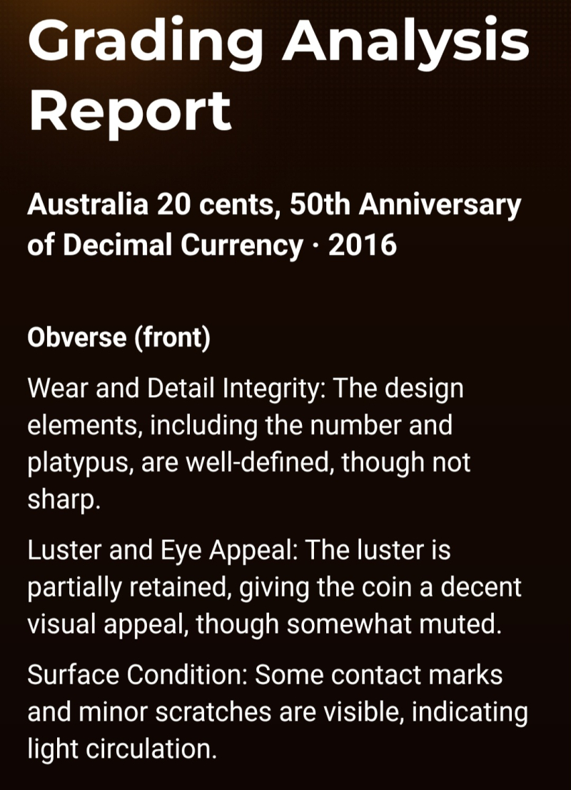 2016 Australian 20 cent, 50th Anniversary of Decimal currency VG-35(very fine)