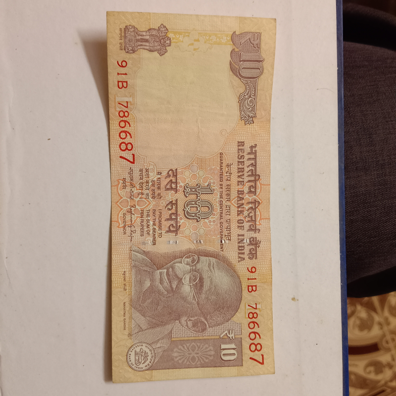 Old Indian 10 rs note with very rare mirror image number series of 786.