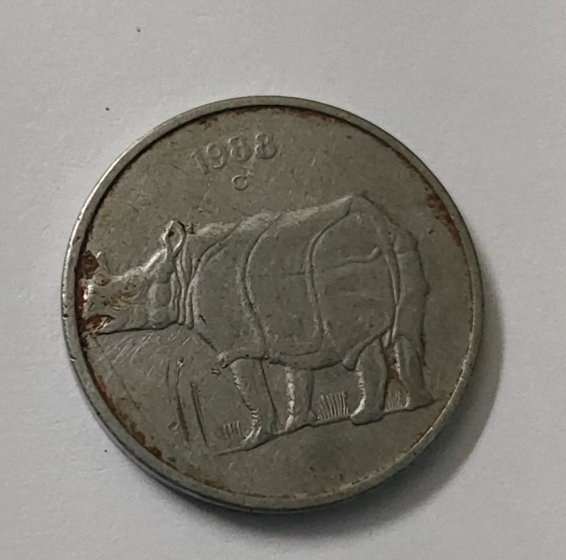 Rare coin of 25 paisa with Rhinoceros mark