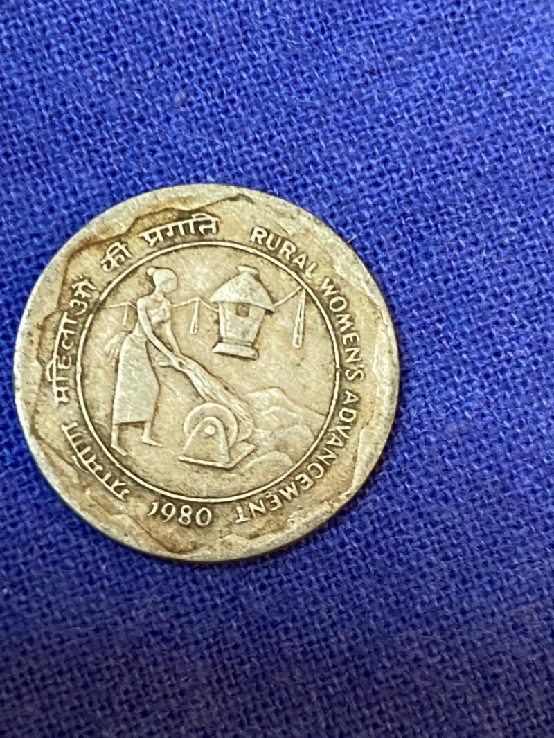 Old 25 paise coin made in 1980 depicted Rural Women Advancement