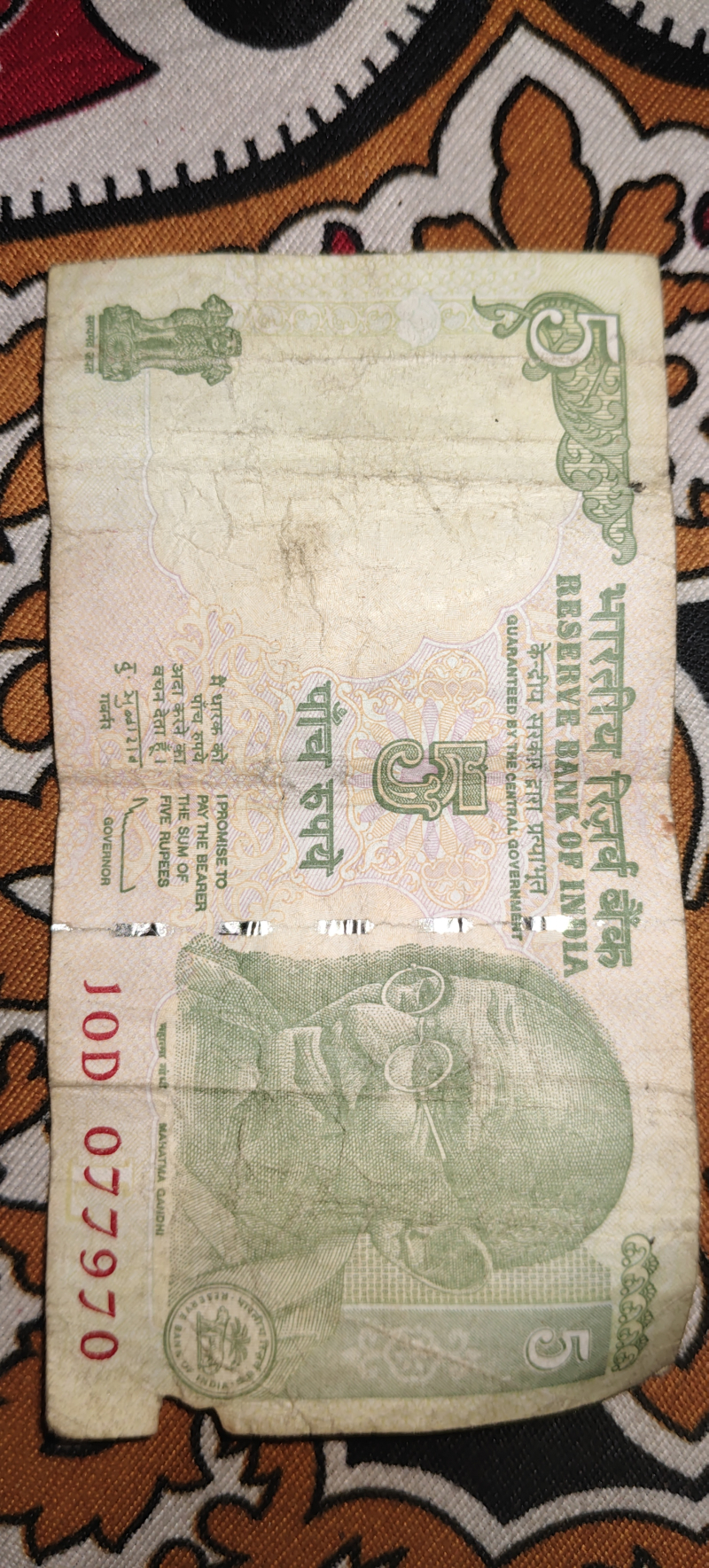 ₹5 Ka Note 8 tractor wala jismein tractor Chala hua Hai San 2009 ka hai aur yah note lagbhag 11 sal Purana Hai aur yah note ke condition sahi hai acchi hai aur yah tractor wala note h