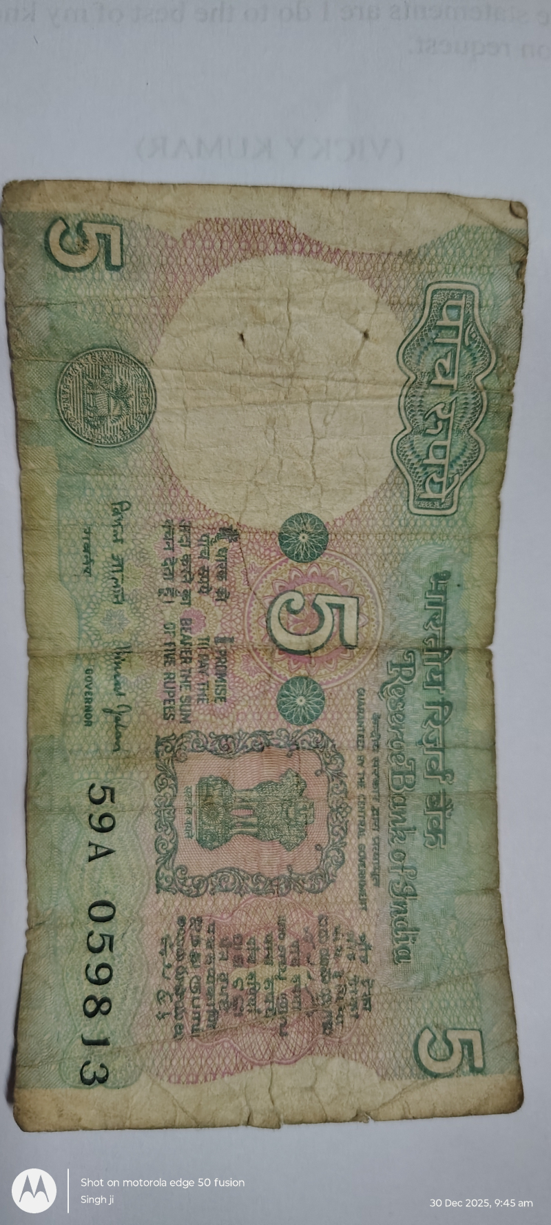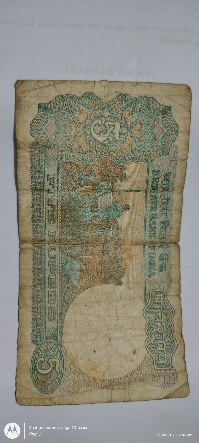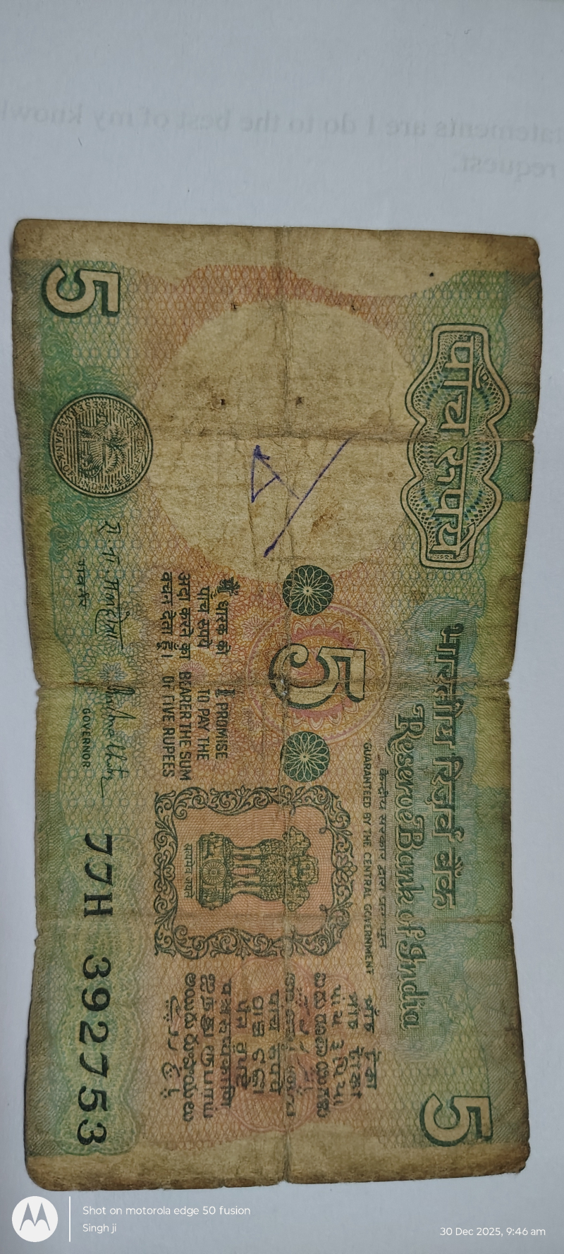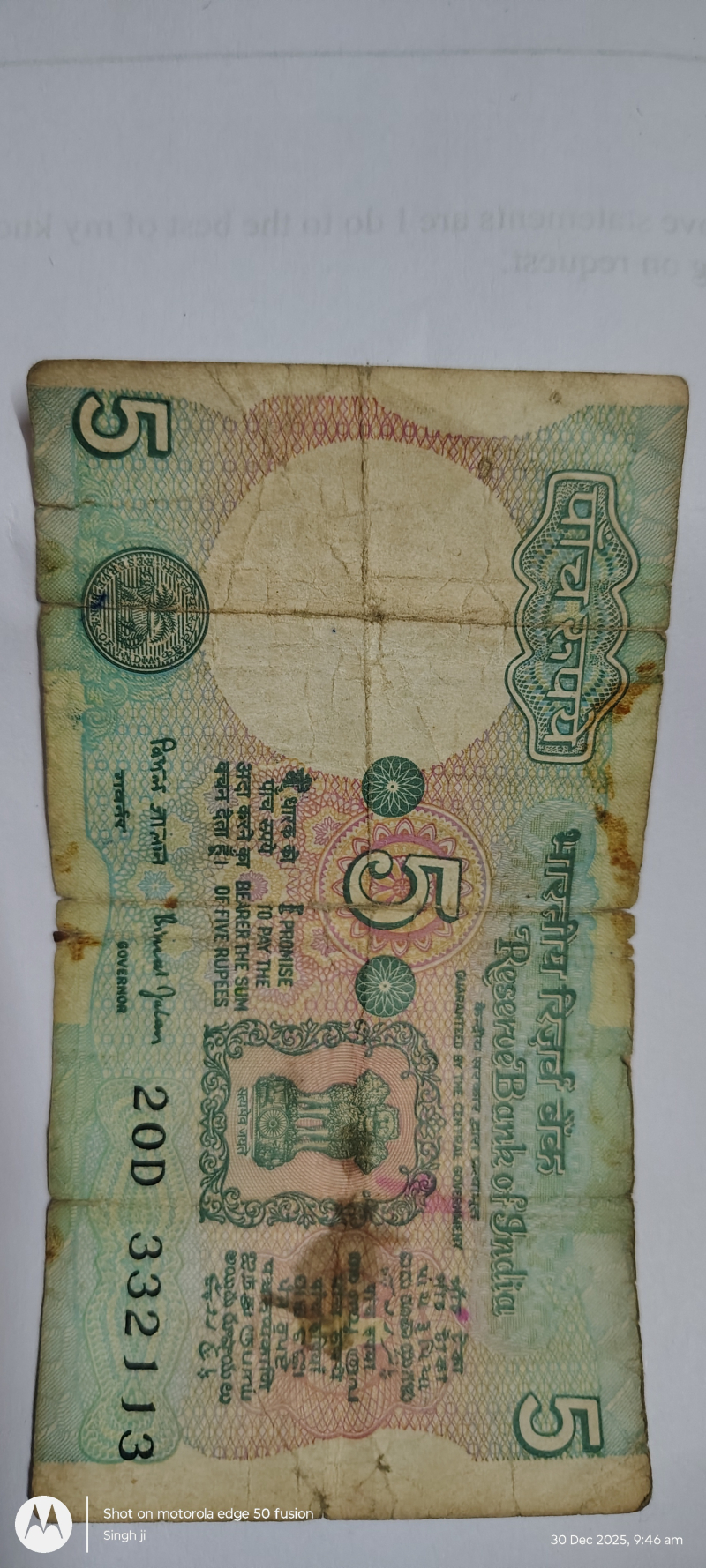 5 Rupee Note