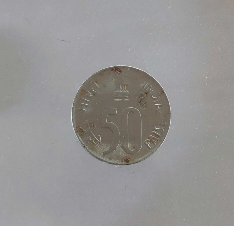 1995 ka 50 paise ka Sikka jiske piche India ka naksha banaa hua hai