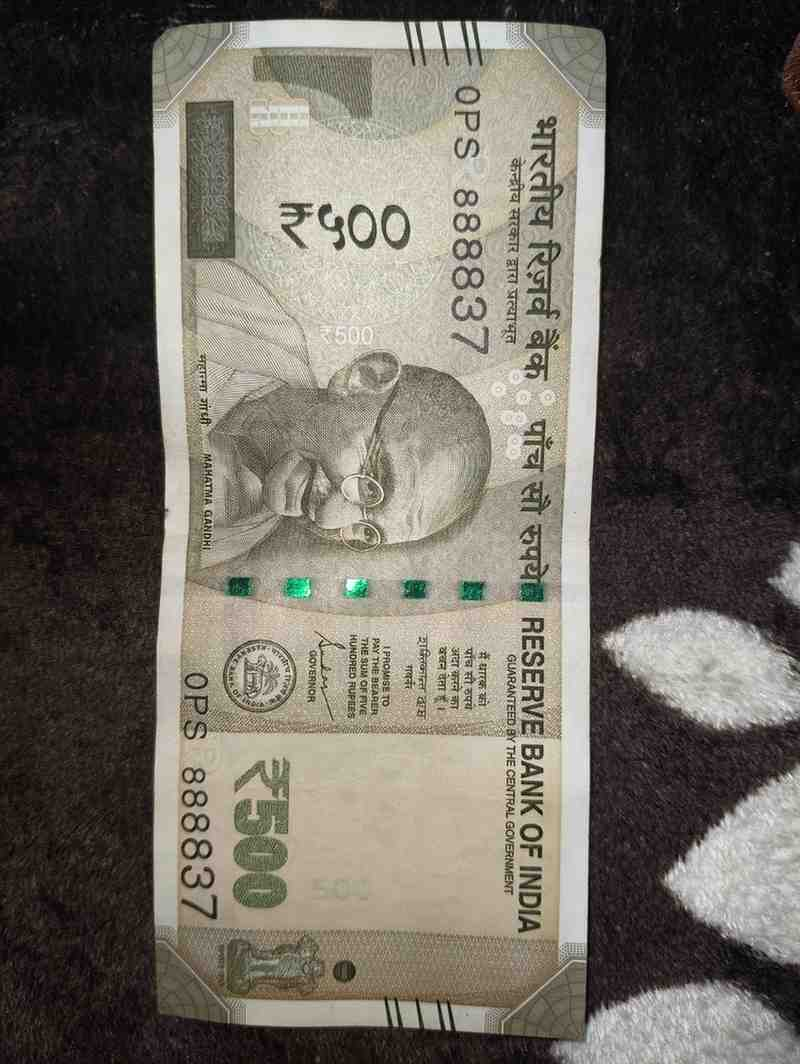 A INR ( INDIAN RUPEES ) , of 500 notes , of serial number 888837