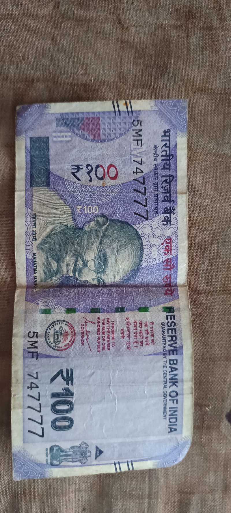 5MF 747777 100rs sreal number old note 10rs 88N 54843J