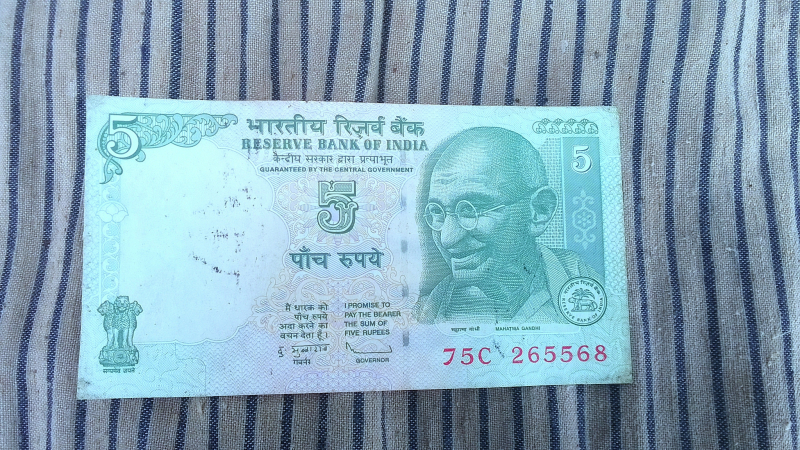 Indian 5 rupee note