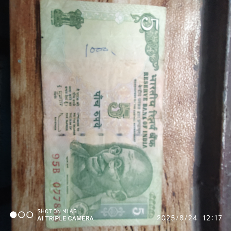 786 numbered old tractor 5 ruppe note at reasonable and negotiable price