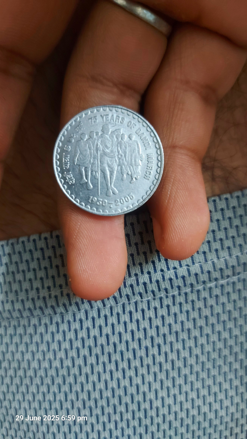 A coin from old times of india on one side gandhi ji doing dandi march this coin is from 1930 which got discontinued in 2005 it is a rare type of coin if anyone is interested to buy this coin the mail me on