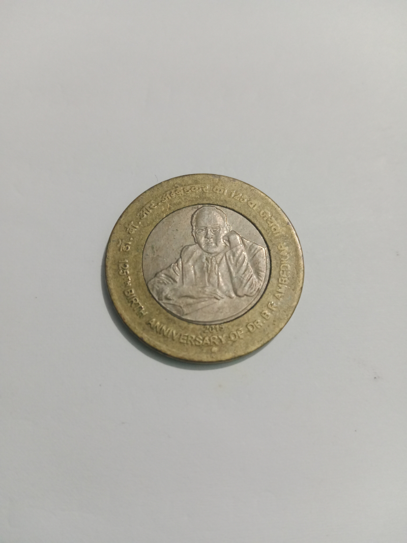 Here's a detailed overview of the ₹10 Bi-metallic commemorative coin honoring Dr. B.R. Ambedkar, issued in 2015 to mark his 125th birth anniversary: