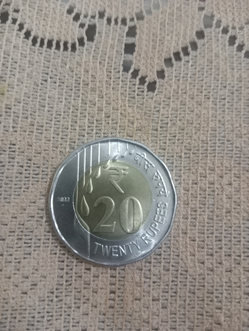 A unique coin of 20 rupees of 2022 years made. Rarely founded .