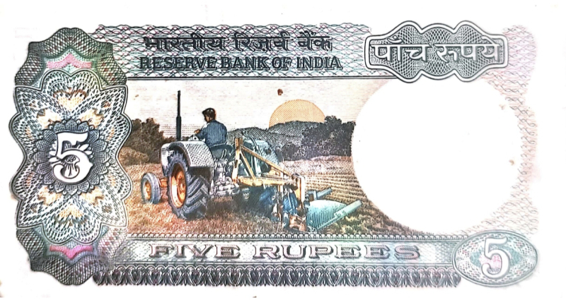 Five rupee indian currency Man with Tractor