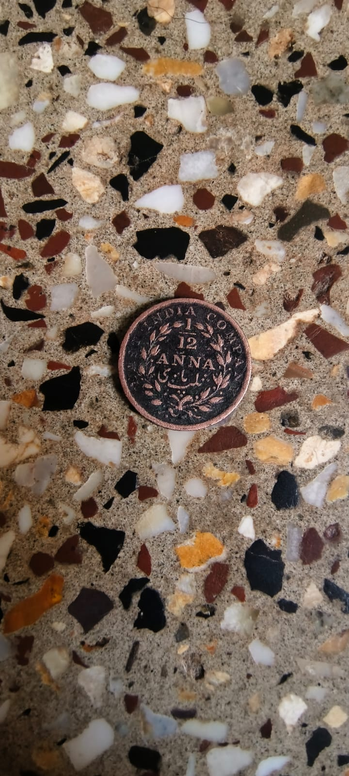 This appears to be a copper coin from the British East India Company, specifically a "1/12 ANNA" denomination. The text "EAST INDIA COMPANY" is visible around the rim, and the value "1/12 ANNA" is prominently displayed in the center. It's an interesting piece of historical currency from colonial India.