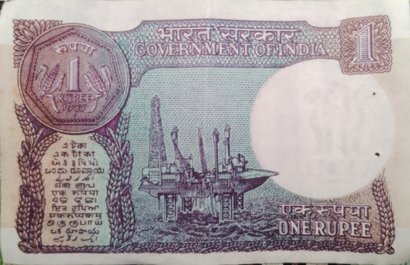 Indian 1rs currency 1987