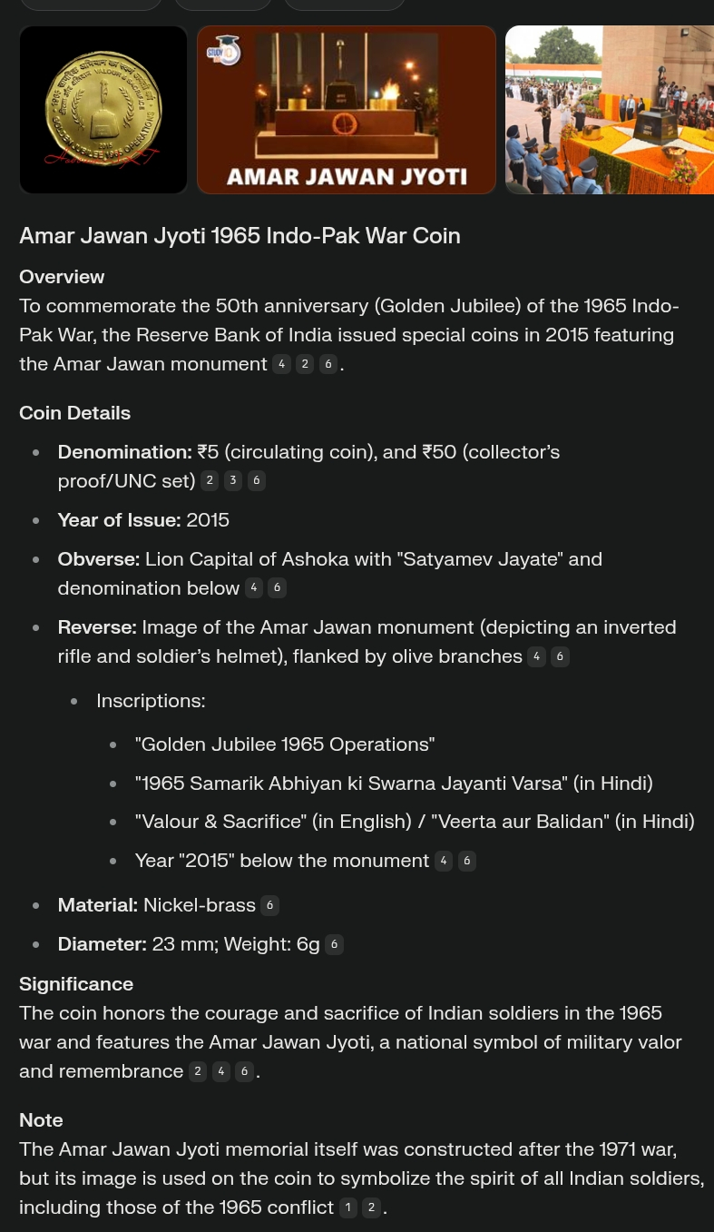 INDIAN ARMY Amar Jawaan Jyoti 1965 Indo-Pak War Memorial Coin VERY FIN