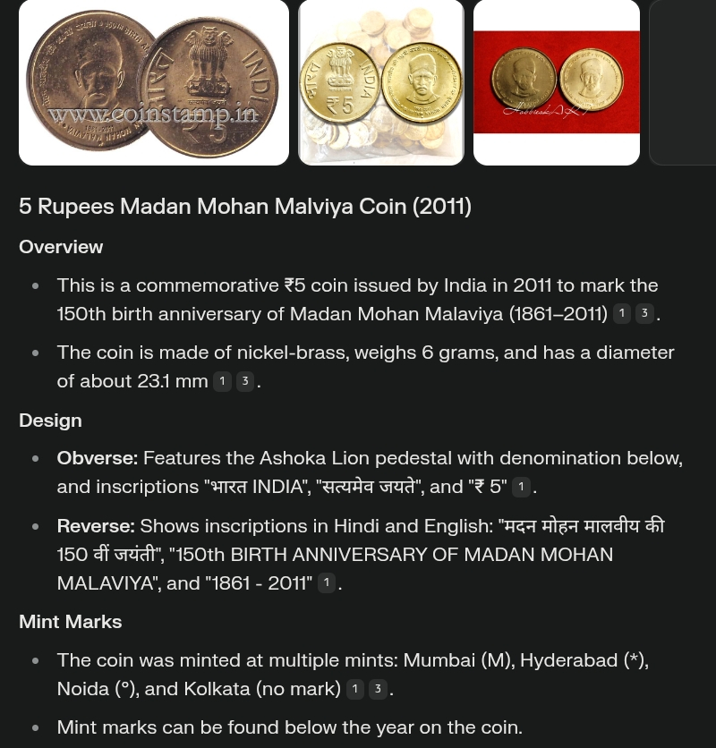 Madan Mohan Malviya 150 Birth Anniv 5 Rupee Coin ORIGINAL IMAGE OF C
