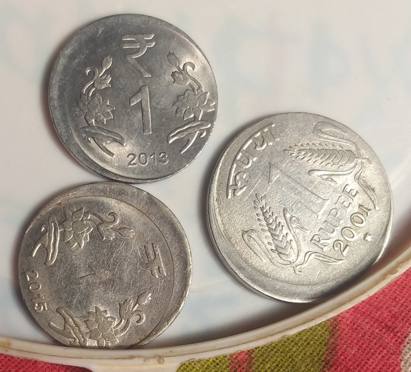 Three pcs one rupee error mint coin sale very cheap price .