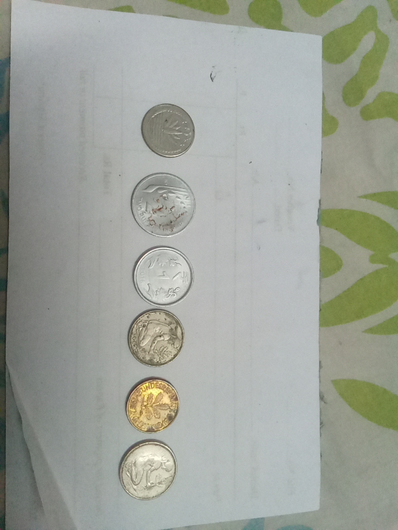2 coin new India 1 and 2 rupees and 3 coinns out countries 50 coin and 5 coin
