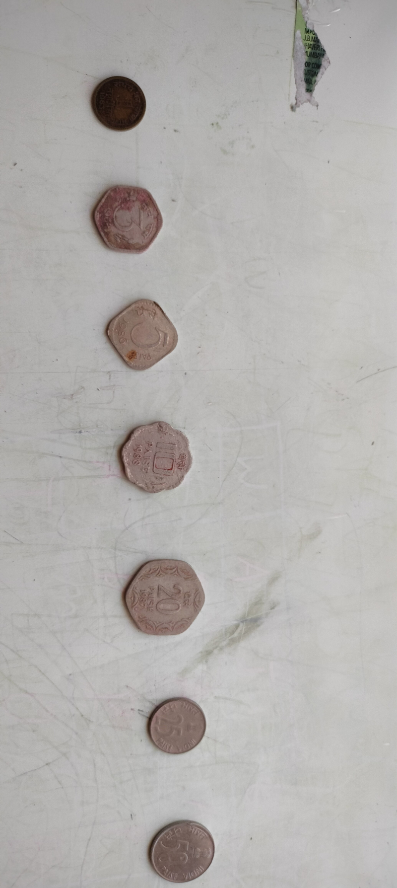 Old Indian coins 1,3,5,10,20,25,50 paisa