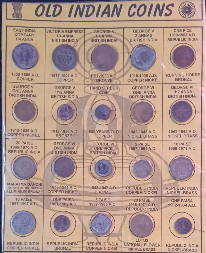 Old Indian coins 1,3,5,10,20,25,50 paisa