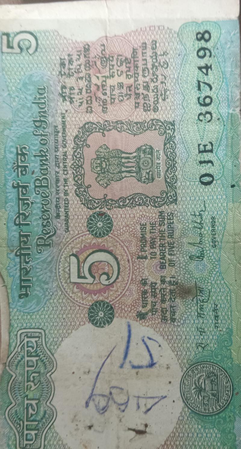 Rare old 5 rupees note