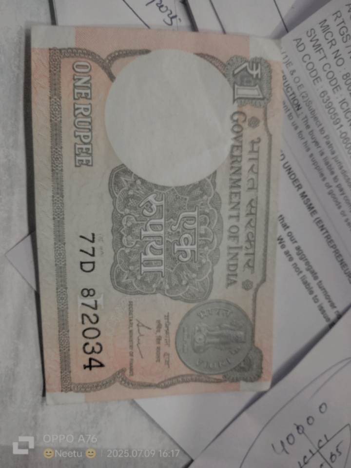 Old one rupees note