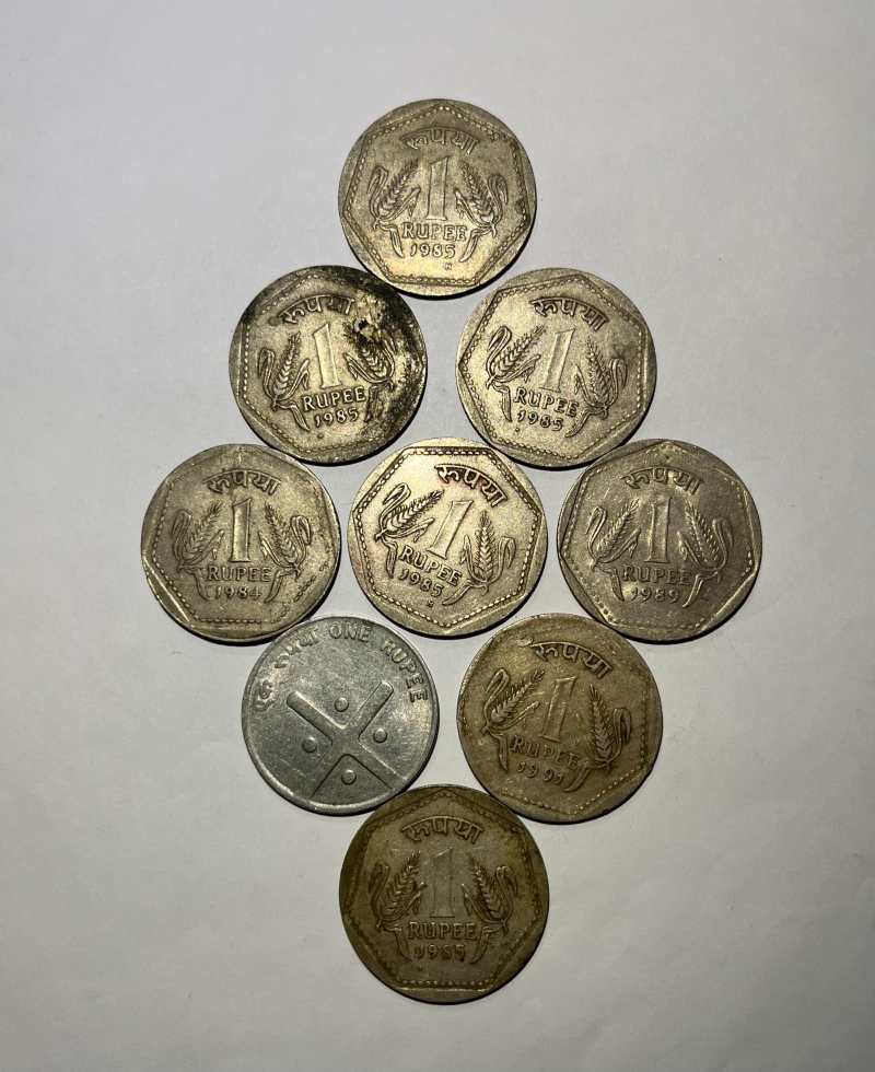Old rare 1 rupees coins 9 pieces