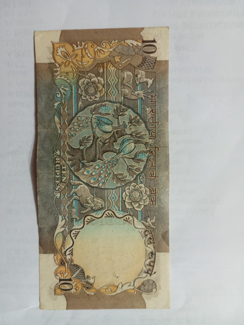 Rare old 10 rupees note peacock note