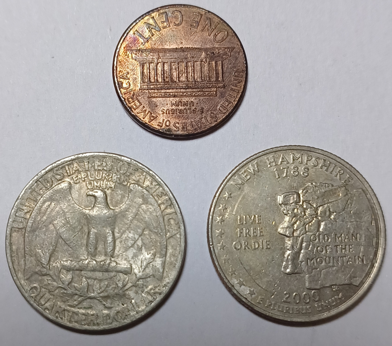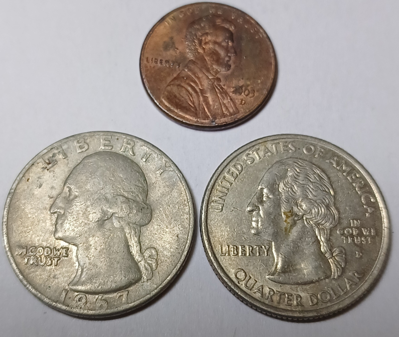 One cent 2003D, Quarter dollar 1788-2000, Quarter dollar 1967