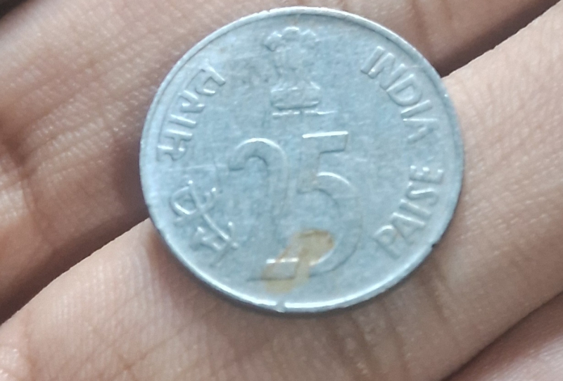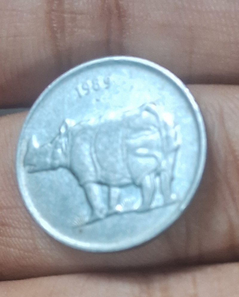 "Authentic 1989 25 paise coin from Noida Mint (round dot mark). Features one-horned rhinoceros design. Stainless steel composition. Circulated condition with clear details visible. Some natural toning present. Good collectible piece from the definitive series. Perfect for beginners or as gap-filler for advanced collections." Shipping charges if any should be paid by the buyer.