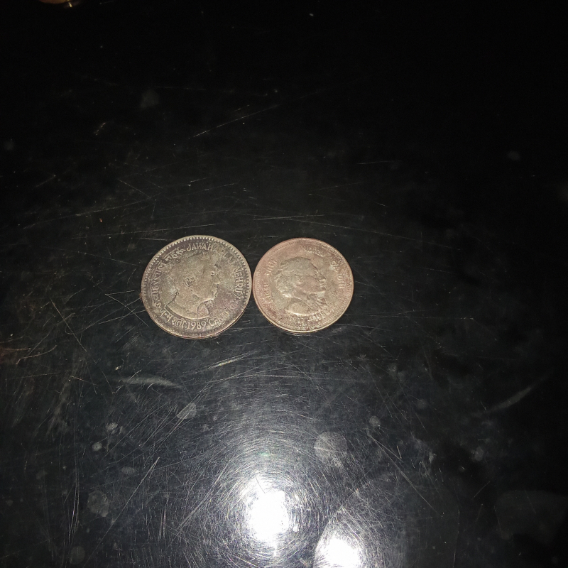 Rare coin of india during the time of 1989 and 1987 facing the picture of Jawaharlal Nehru and indhira gandhi