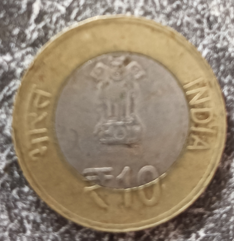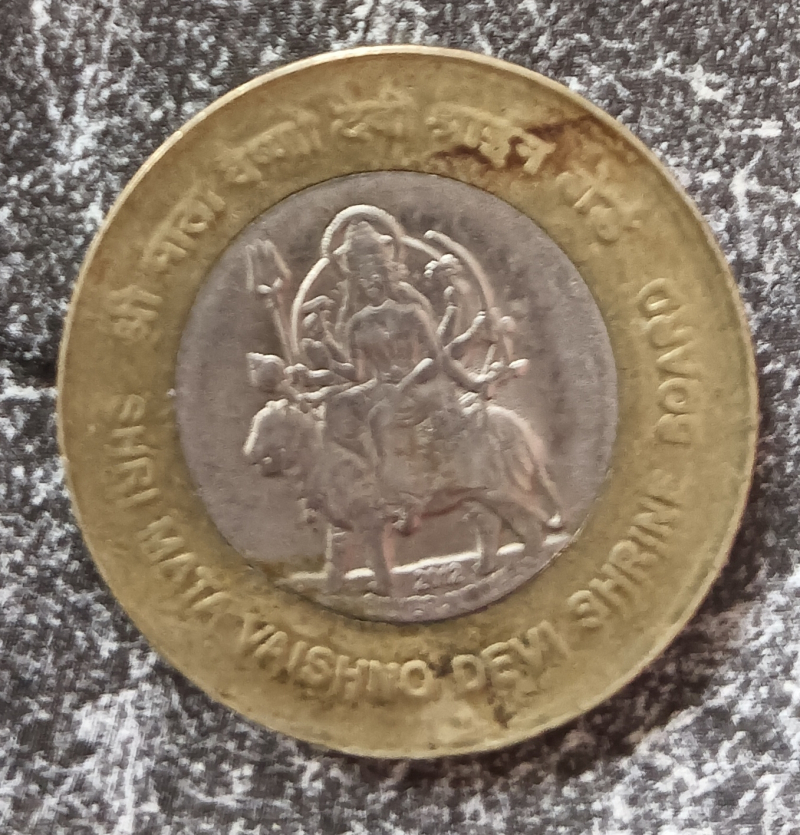Lord Bhavani matha image on lion. Ten rupees coin.