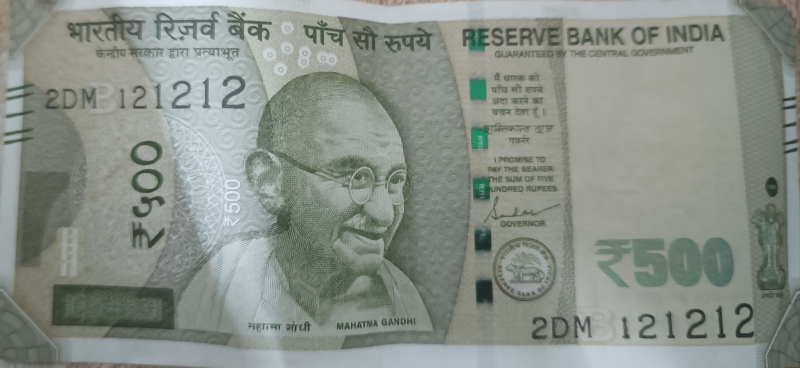 Rarest 500 rs note with number 2DM 121212 for best pricing