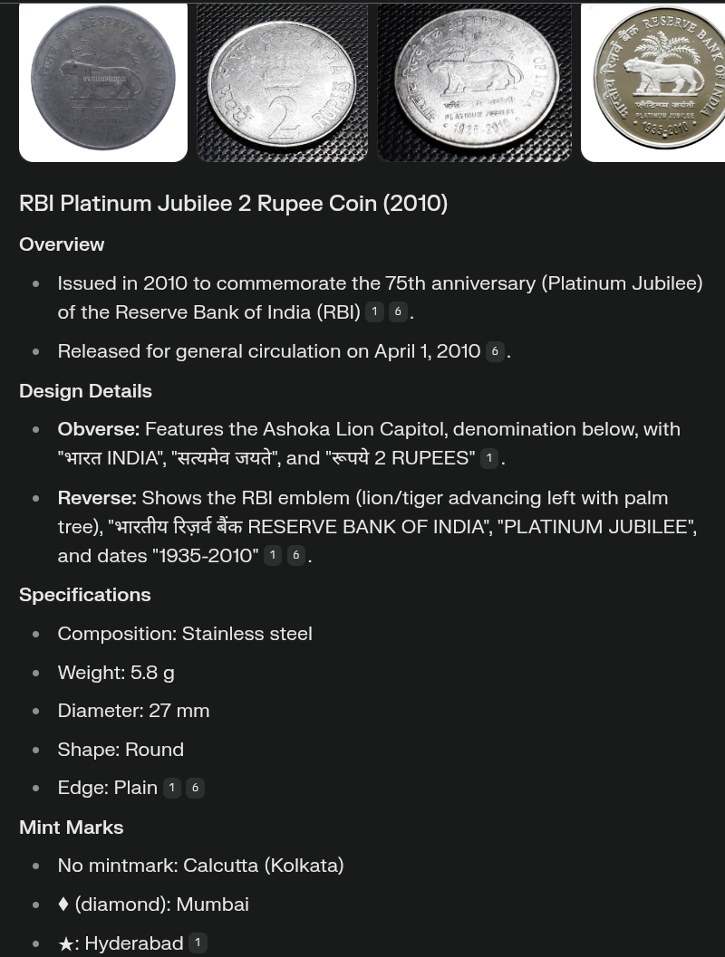 RBI Platinum Jublee 2 rupee coin FINE ( ORIGINAL IMAGE OF COIN ) FREE