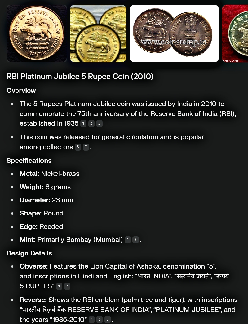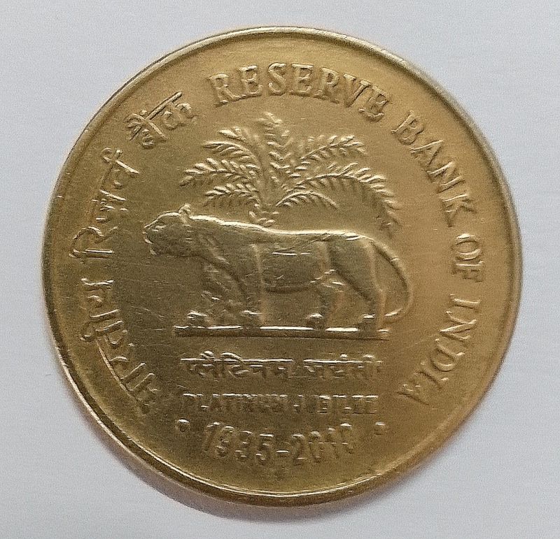 RBI Platinum Jublee 5 Rupee Coin EXTREEM FINE (ORIGINAL IMAGE) FREE S