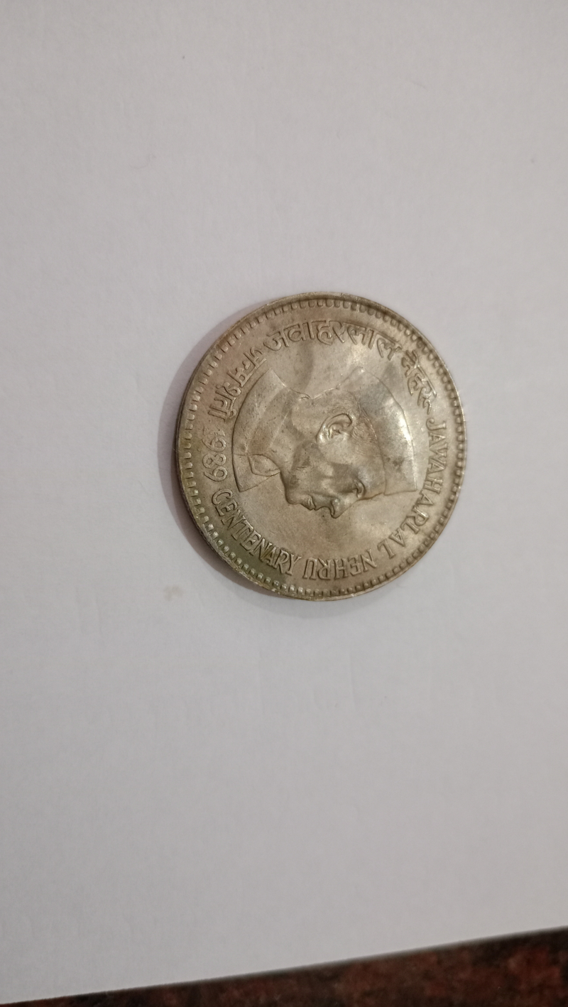 1989 coin with photo of Jawaharlal Nehru