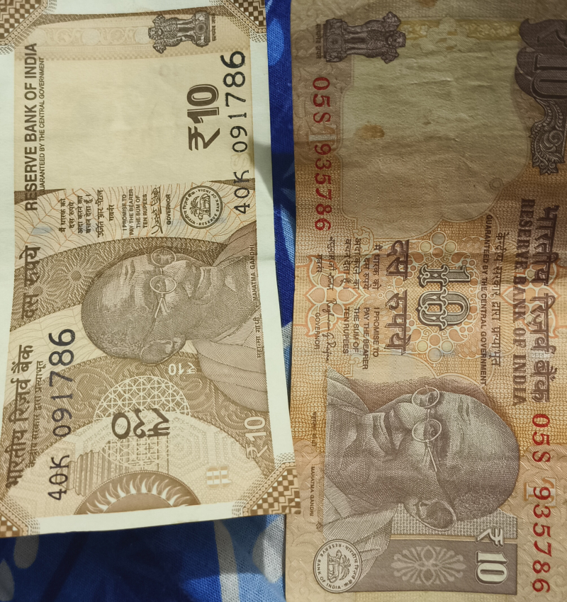 786 serial no indian currency