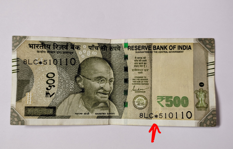 Special Star marked 500 rupees currency with special digits. (The Star (*) symbol is an identifier that is a replaced/reprinted banknote, as RBI mentioned.