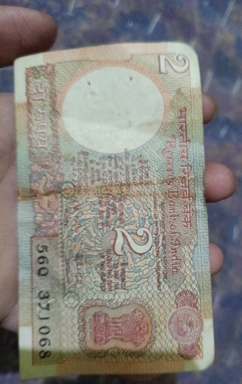 Old and rare ₹2 Indian currency note. Serial number 590371068. Note condition used but well-preserved with visible folds. This denomination is discontinued, making it valuable
