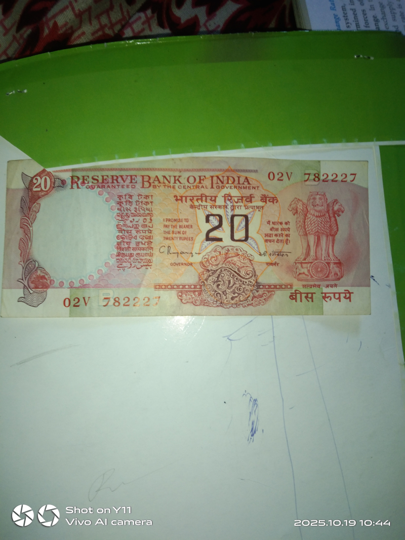 An old ₹20 vintage note of 1980.Rare serial number 782227