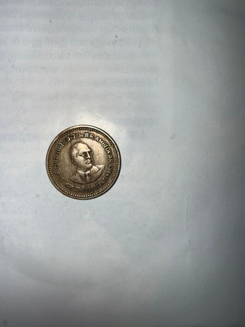 Authentic Indian commemorative coin featuring B. R. Ambedkar, the principal architect of the Indian Constitution. This vintage coin is discontinued from circulation and valued by collectors of historical and commemorative Indian currency. Circulated condition with visible signs of age